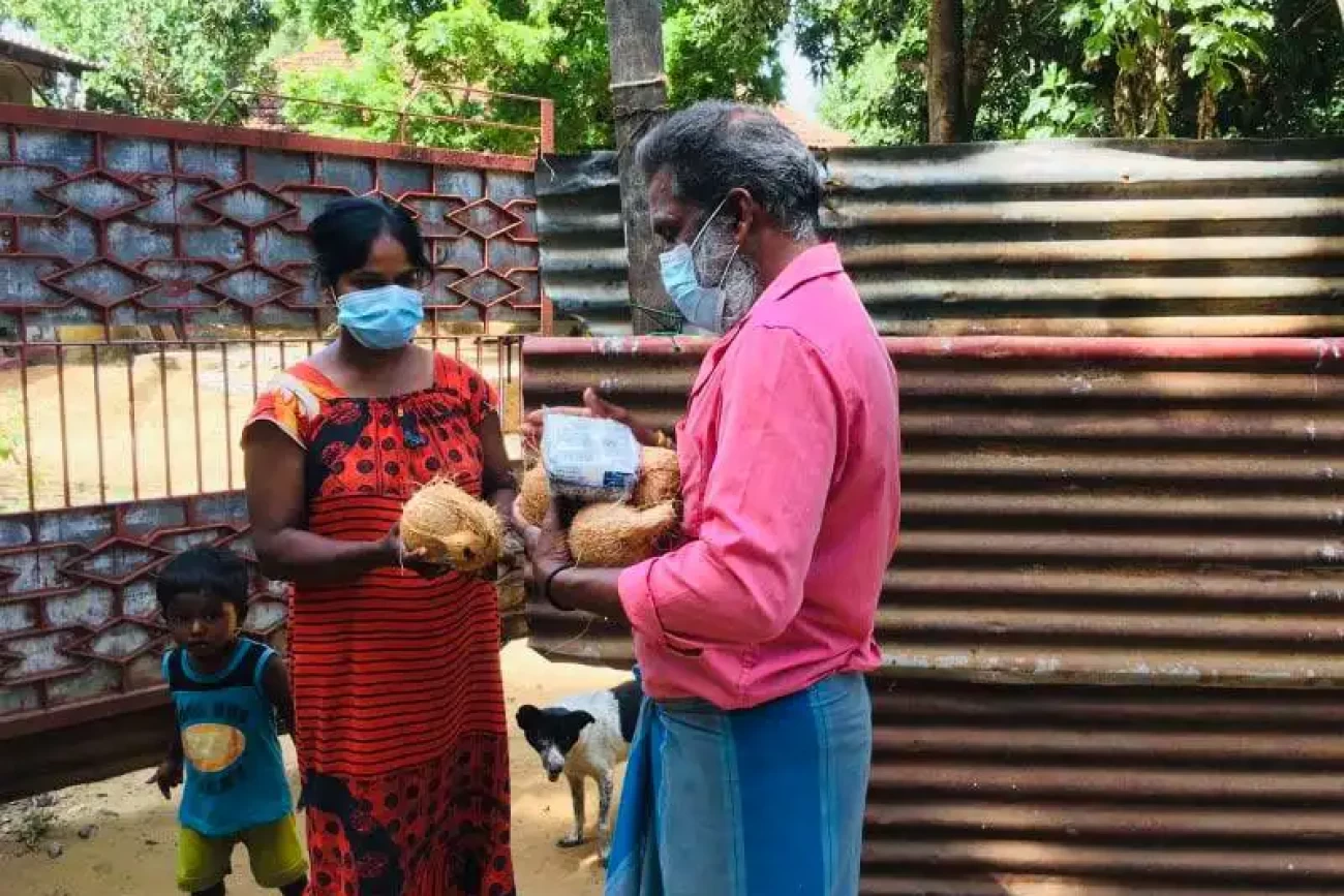 பயனாளிகளின் வேண்டுகோளிற்கிணங்க ஒவ்வொரு குடும்பத்திற்கும் தலா ஐந்து தேங்காய்களும், 1kg உப்புப் பொதியும் வழங்கப்பட்டது.