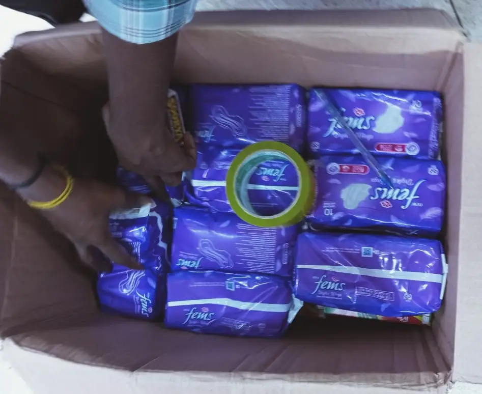 மதியம் முருகமூர்த்தி பாடசாலை முகாம் (35 pkts), ஸ்கந்தவரோதயா கல்லூரி (15 pkts), விசாலாட்ச்சி பாடசாலை (21 pkts) ஆகிய இடைத்தங்கல் முகாம்களில் தங்கியுள்ள பெண்களுக்கு தேவையான 71 Sanitary Napkins packets வழங்கப்பட்டது.